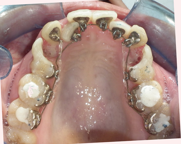 Θεραπείες με εσωτερικά (γλωσσικά) άγγιστρα 1. Περιστατικό με έντονη στροφή του δεξιού άνω κεντρικού τομέα. Αντιμετωπίσθηκε με εσωτερικά σιδεράκια. 2. Περιστατικό με έλλειψη χώρου για τους πλαγίους τομείς. Αντιμετωπίσθηκε με εξαγωγές των πρώτων προγομφίων και εσωτερικά σιδεράκια Κοινοποιήστε: Μοιραστείτε στο X(Ανοίγει σε νέο παράθυρο) Χ Mοιραστείτε στο Facebook(Ανοίγει σε νέο παράθυρο) Facebook Μου αρέσει! Φόρτωση...