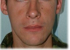 Μετα τη θεραπεία με ορθοδοντική αντιμετώπιση και χειρουργική προώθηση της άνω γνάθου και οπισθιέστερη τοποθέτηση και διόρθωση της ασυμμετρίας της κάτω γνάθου